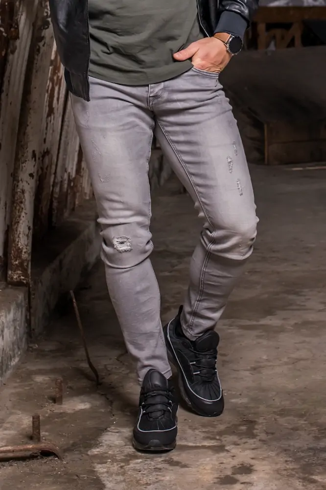 Ανδρικό Jean παντελόνι Harpy με γδάρσιμο (Γκρι)