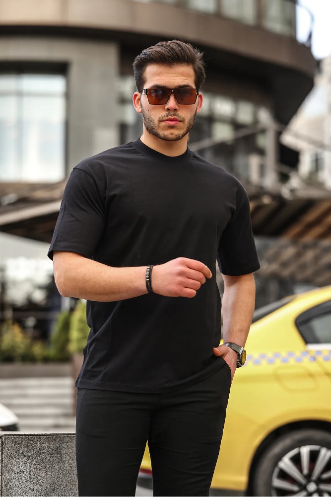 Αυτό το μαύρο Oversized μονόχρωμο T-Shirt είναι φτιαγμένο από βαμβακερό πενιέ πανί, προσφέροντας μια αίσθηση μαλακής και άνετης εφαρμογής. Η φαρδιά γραμμή του δίνει άνεση και ελευθερία κίνησης, ενώ η απλότητα του μονόχρωμου design το καθιστά ευέλικτο και εύκολο στο συνδυασμό.
