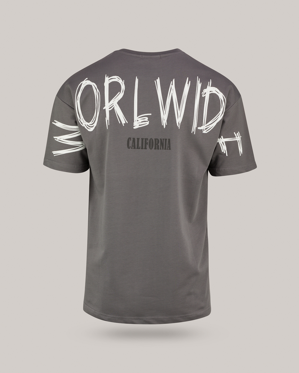 Ανδρικό Oversized T-Shirt CALIFORNIA με στάμπα στην πλάτη (Γκρι σκούρο)