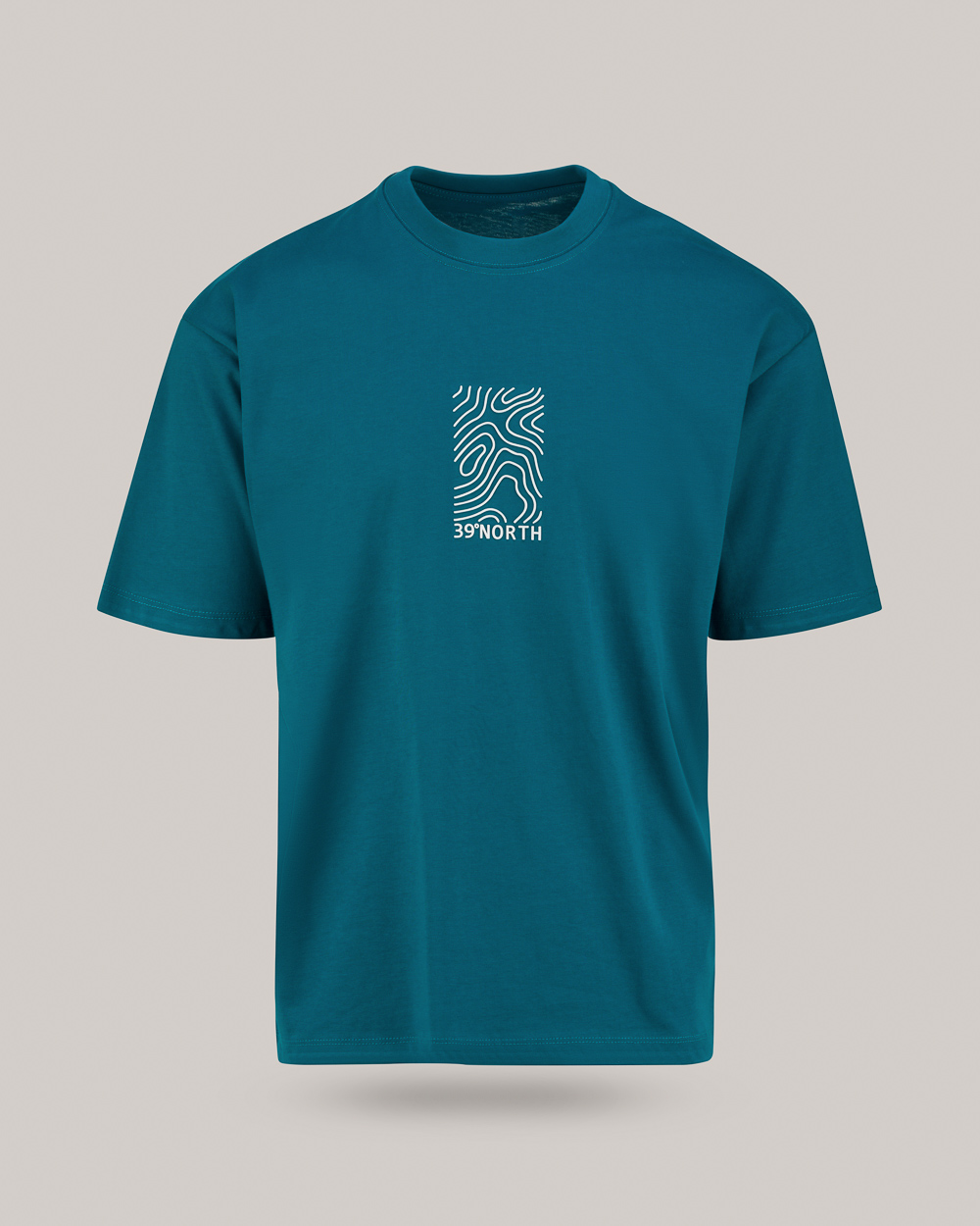 Ανδρικό Oversized T-Shirt με στάμπα NORTH στην πλάτη (Πετρόλ)