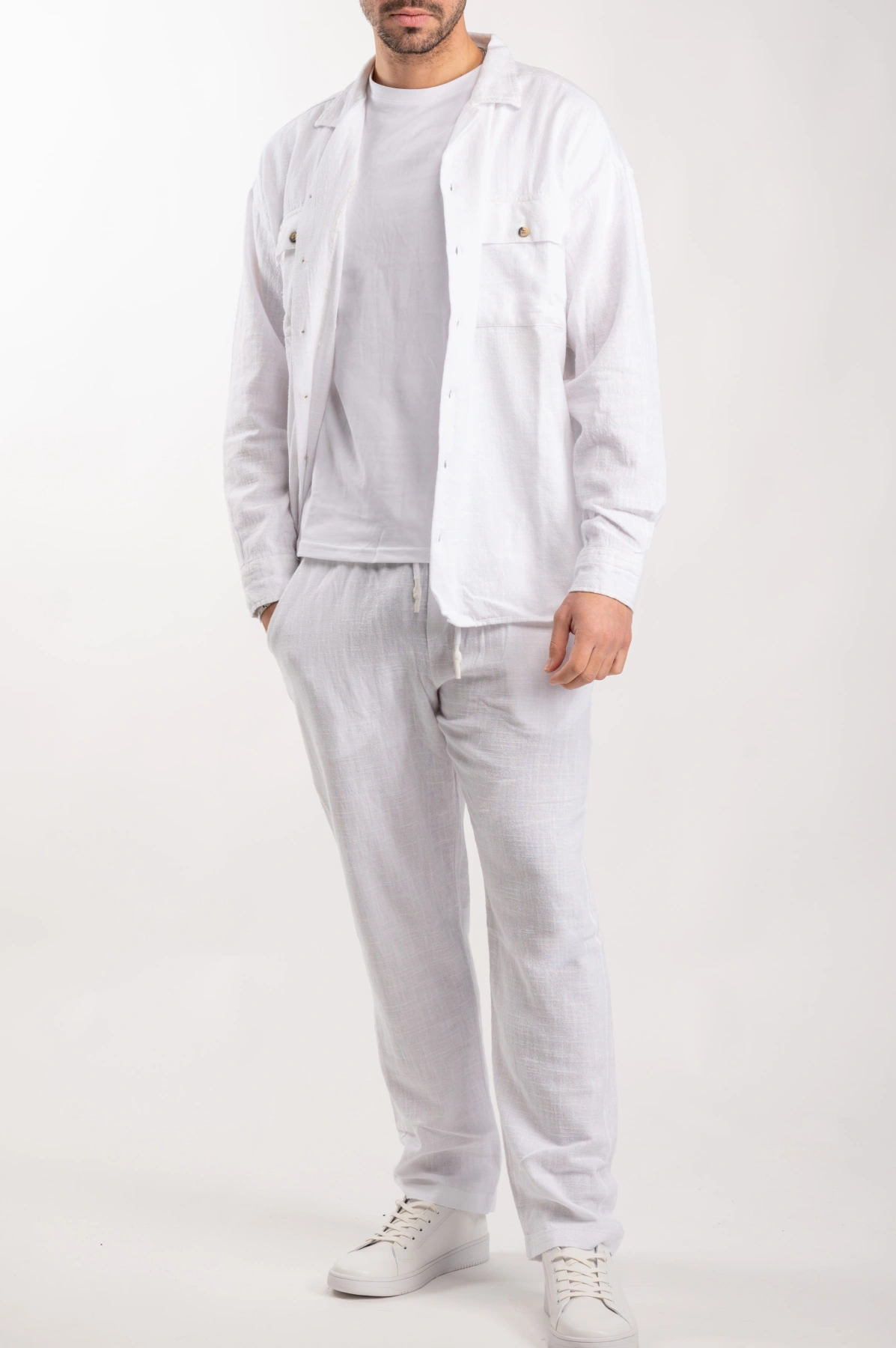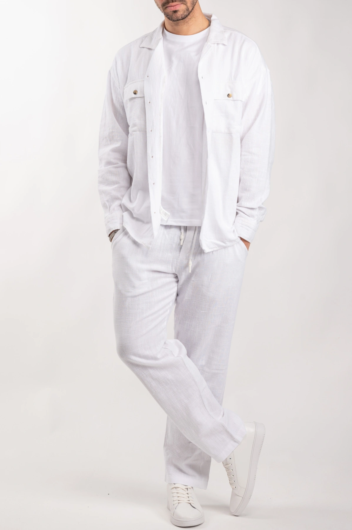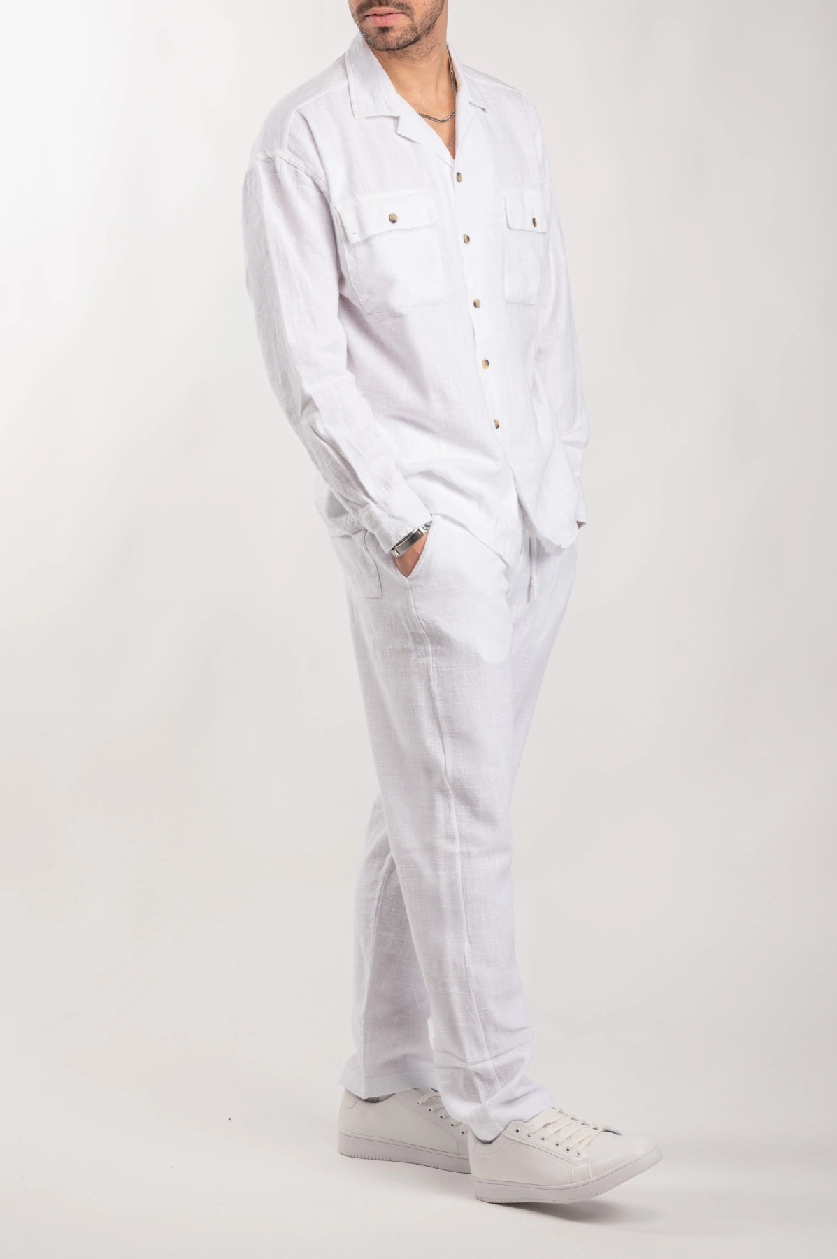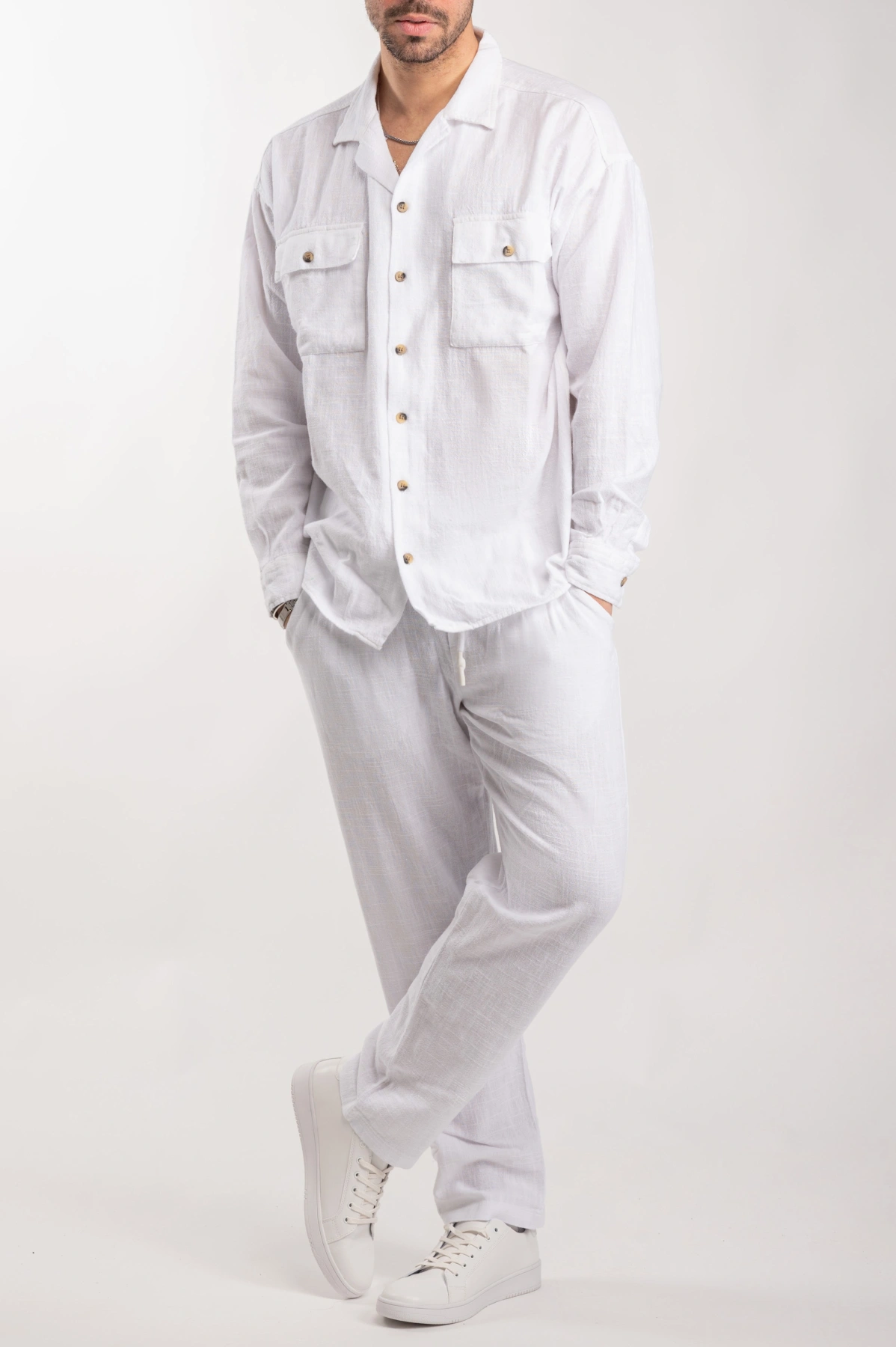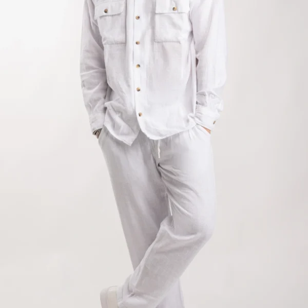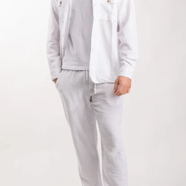 Ανδρικό λινό σετ μακρύ (Λευκό)