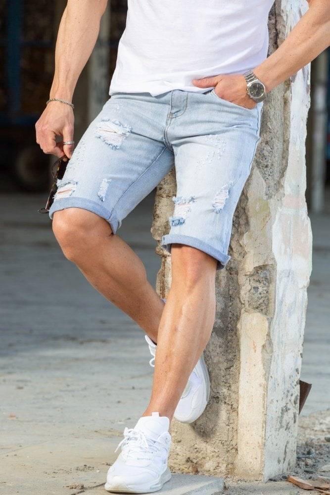 Ανδρική Jean βερμούδα by Harpy με σκισίματα σε ανοιχτό χρώμα! Η εύκολη επιλογή για κάθε Stylish ανοιξιάτικο ντύσιμο. Μπορείς να την συνδυάσεις εύκολα με οποιοδήποτε T-Shirt της συλλογής μας!