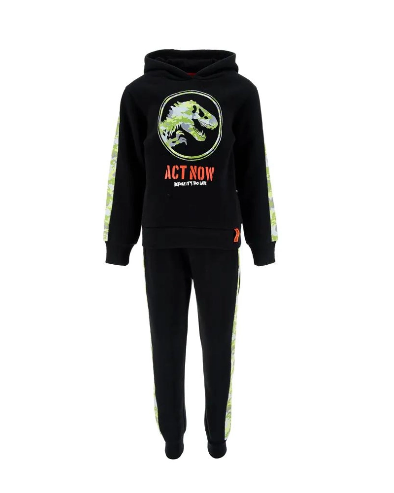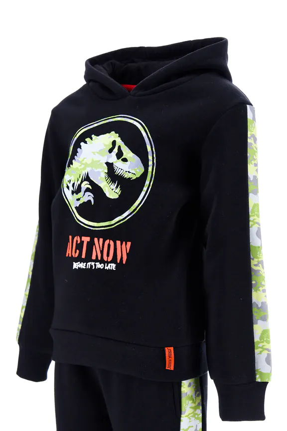 Jurasic set Φούτερ ΓΚΡΙ με κουκούλα με στάμπα με τον αγαπημένο τους T-rex και φακαρόλα στα μανίκια και στη φόρμα σε παραλλαγή harpy