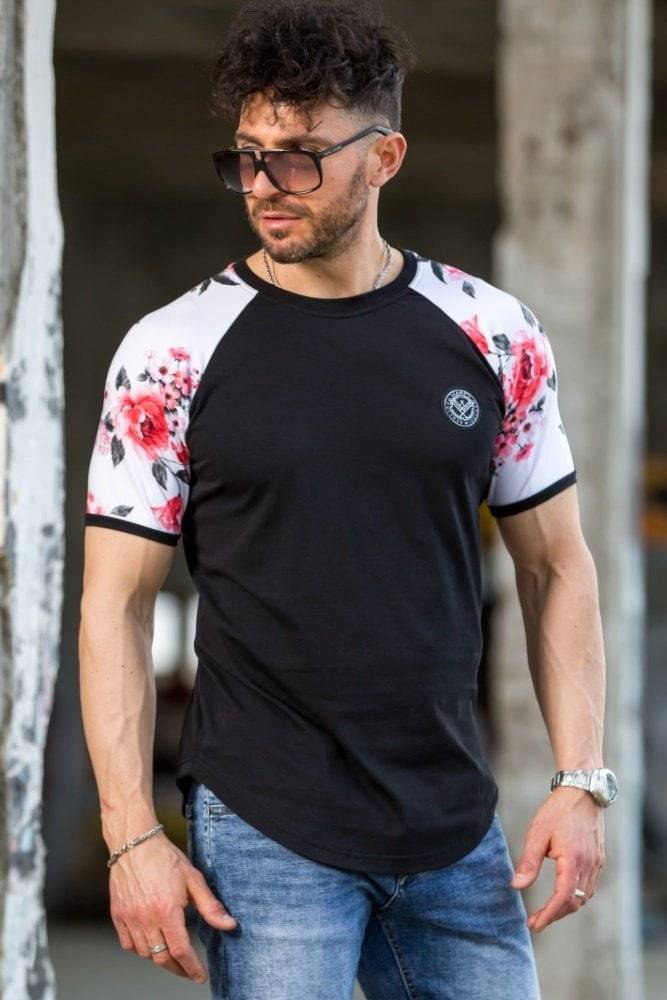 T-Shirt Harpy με Floral μανίκι (Μαύρο)