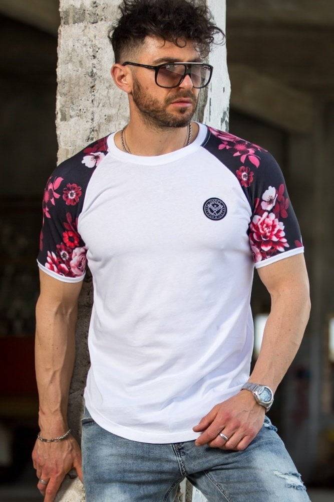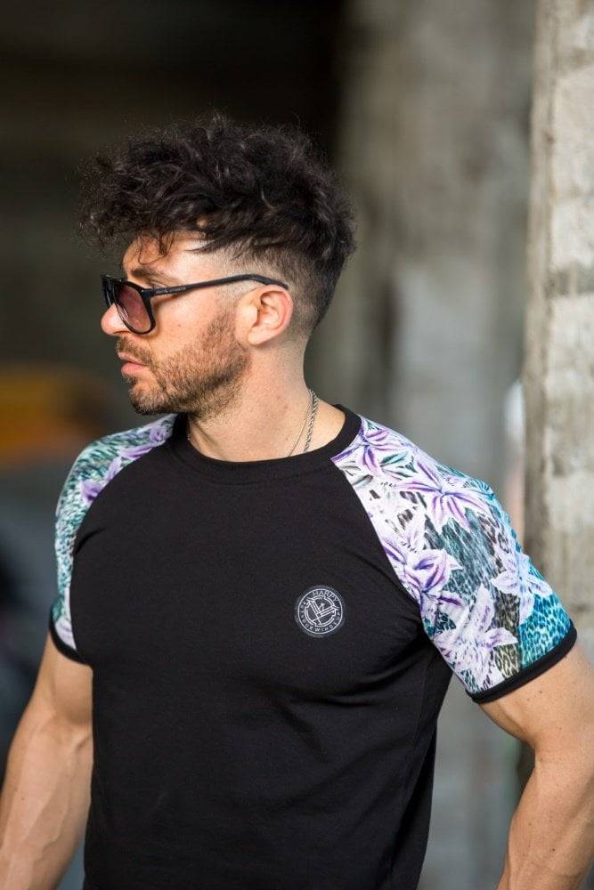 Ανδρικό T-Shirt HARPY με ιδιαίτερο Floral Μανίκι,σε μαύρο χρώμα.